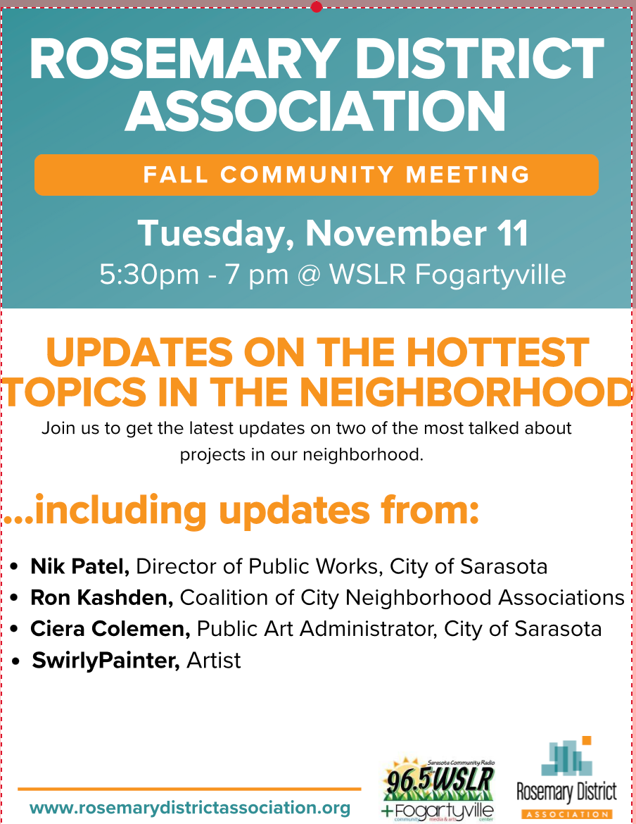 Our recent fall quarterly meeting provided an opportunity for the community to stay informed about the latest Rosemary District developments and engage in discussions, particularly focusing on addressing parking challenges associated with the retail renaissance. We value your participation and anticipate more community engagement in the future.
